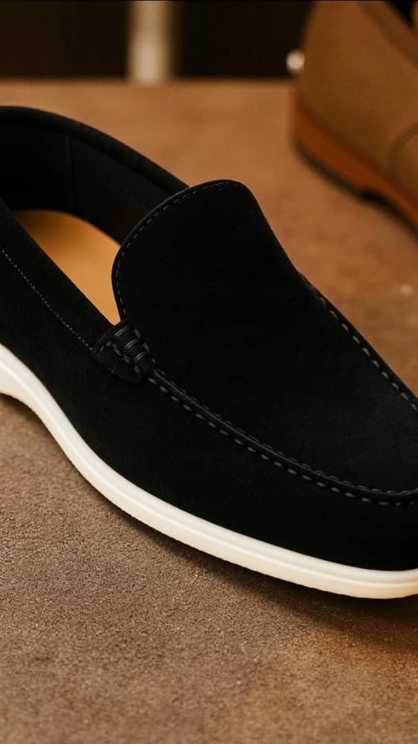 The Amari Black Suede Loafers are built for effortless versatility. Pair them with slim black or charcoal trousers for a refined, office-ready look, or keep it relaxed with dark denim and a crisp white tee for weekends.